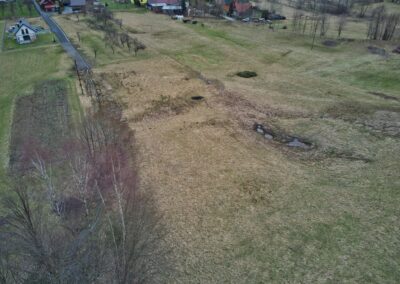Działka nr 25/1 o powierzchni 0.0119 ha położona w miejscowości Krzyżowa, gmina Jeleśnia, powiat żywiecki. Działka to nieruchomość gruntowa niezabudowana o przeznaczeniu pod zabudowę mieszkaniową. Działka nie jest zagospodarowana, porośnięta trawami, nieogrodzona. Teren o nachyleniu w kierunku wschodnim, stanowi całość na gruncie z działkami 26/1, 26/2, 27, 25/2, 36, 37/1, 37/2, 38/1, 38/2 , które posiadają pośredni dostęp do drogi asfaltowej poprzez drogę gruntową oraz częściowo drogę utwardzoną kamieniem łamanym. Nad działką przebiega napowietrzna linia energetyczna średniego napięcia. Działka graniczy z niezainwestowanymi gruntami przeznaczonymi pod zabudowę mieszkaniową oraz od strony zachodniej z gruntami rolnymi.