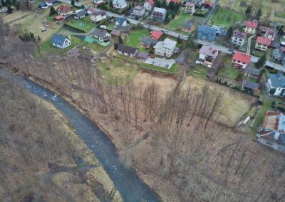Działka nr 1/8 o powierzchni 0.0666 ha, nr 10223/2 o powierzchni 0.0573 ha, nr 1/14 o powierzchni 0.0429 ha, położone w miejscowości Krzyżowa, gmina Jeleśnia, powiat żywiecki. Działki to nieruchomości gruntowe niezabudowane o przeznaczeniu w części pod tereny zieleni nieurządzonej oraz tereny zieleni przywodnej. Działki nie są zagospodarowane, przez ich wschodnią część przebiega ciek wodny. Działki na gruncie stanowią całość o kształcie regularnym o średniej szerokości około 33 m. Teren o nachyleniu w kierunku potoku. Działki nie posiadają dostępu do drogi. Nieruchomość graniczy z terenami zieleni i terenami zabudowy mieszkaniowej.