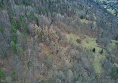 Działka nr 99/6 o powierzchni 0.1777 ha położona w miejscowości Krzyżowa, gmina Jeleśnia, powiat żywiecki. Działka to nieruchomość gruntowa niezabudowana o przeznaczeniu pod tereny leśne. Działka nie jest zagospodarowana, zadrzewiona. Teren ten cechują duże spadki. Działka nie posiada dostępu do drogi publicznej, dostęp możliwy jedynie po ścieżkach leśnych, dodatkowo w pobliżu zlokalizowany potok. Dominujący drzewostan brzozowy (opis taksacyjny: odział 2-b, powierzchnia pododdziału – 5,8212 ha, typ siedliskowy lasu – LMGŚW, drzewostan – bon. I; 3BRZ40, 1ŚW40, 1JD40, 1BK70, 1BRZ60, 1OS50, 1ŚW60, JD60, zadrzewienie 0,4).